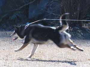 ロングリードに替えた途端、脱走する黒い流れ星。。。
