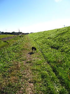 ここだとデカい声を出しても平気!「マテ」の最中にウオーキング中のじいちゃんばあちゃんが声かけて福さんダンシングしちまうけれども、それも練習の一環(になると思いたい)!
