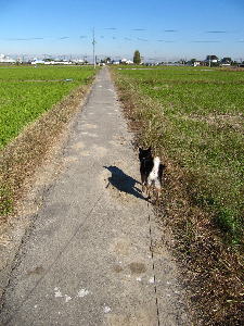 集中力ゲージの切れたお福さんといっしょ、帰りはまったりと歩きます。
