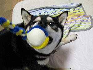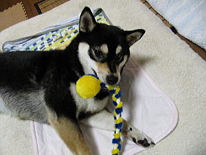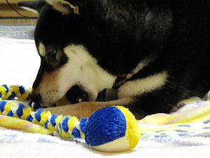 これがなにやら福ゴコロをゲットし、かじったり投げたり添い寝したりして遊んでおります。