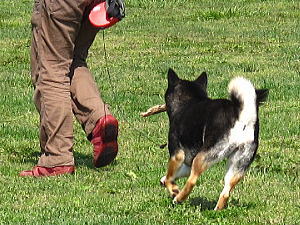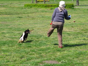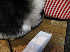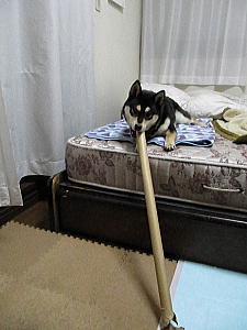 なんかくわえて歩く犬。