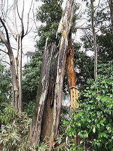久しぶりに神社に行ったらば焼けた木が残っていてビックリした。