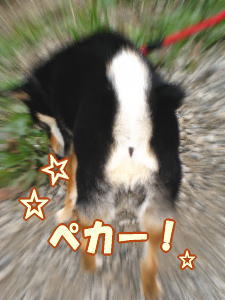 ピッカピカのお尻をプリプリいわせながらのお散歩でございますよ。