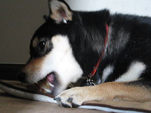 あまりに固いガム系オヤツですと、顎力?の弱い福さんの場合かじりきれずに「守り」に入ってしまうため与えられないのですが、こちらは適度に削れていくのでだいじょうぶそうです。
