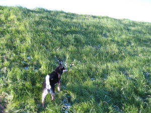 霜を追いかけズンズンズンドコ登っていく柴女子1歳。