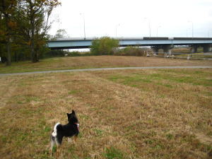 で、いつものように公園を出て土手を越えてお外の河川敷方面へテクテクテックン