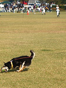 準備にもたつくとうちゃんにシビレを切らして、ボールを奪い取ろうとする黒い弾丸。