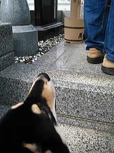昨日の教訓でゆっくり福ペースでテ~クテク。過保護かもしれんがとりあえず今はこれぐらいしか思いつかないもの。途中「オスワリ」「フセ」コマンドは効いてる。