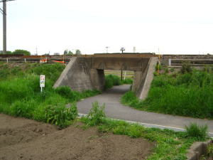 このトンネル、人間はかがまないと通れません。自転車はスライディングしないと通れません。ワンコはジャストサイズで通れます。
